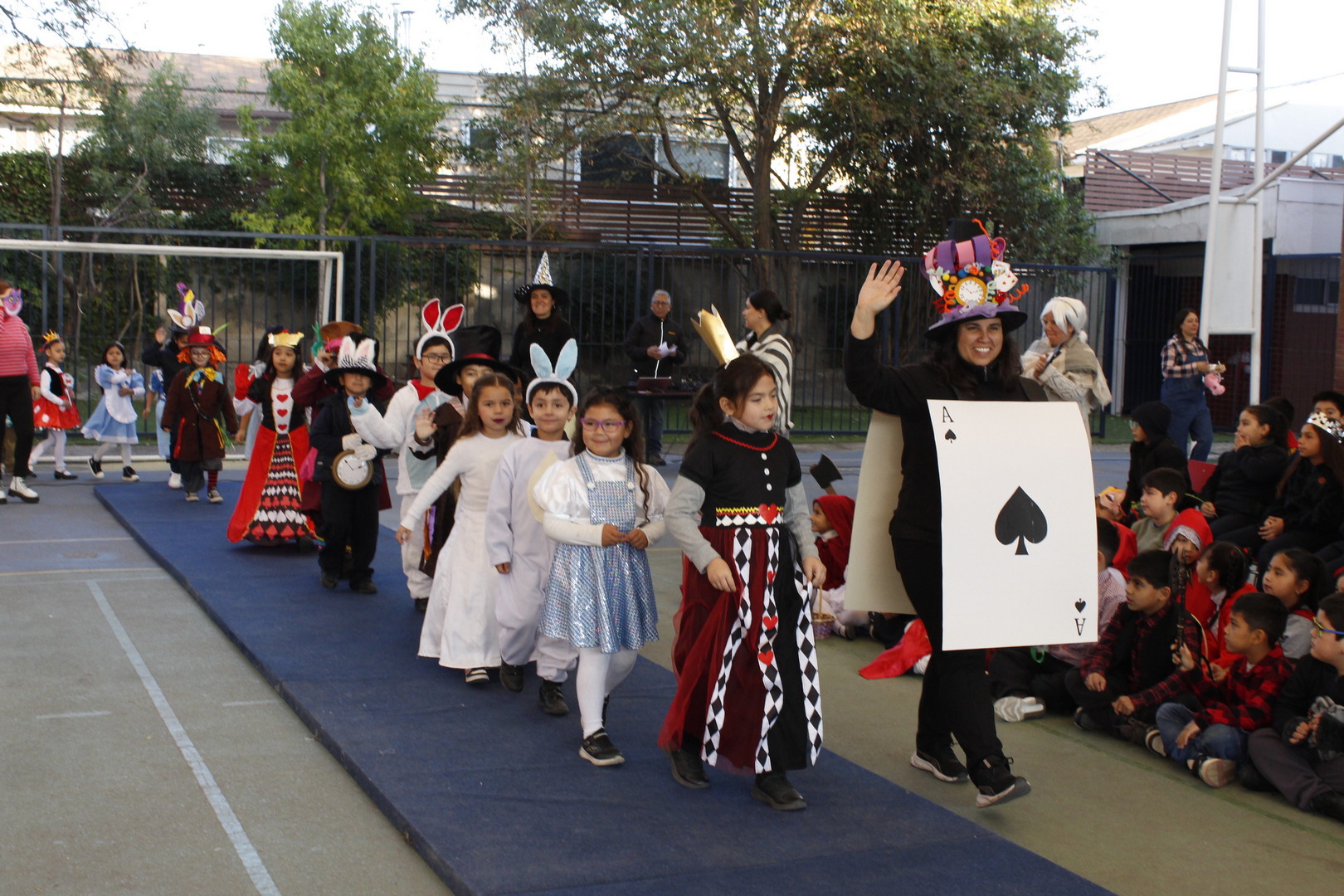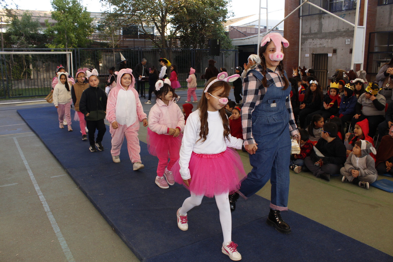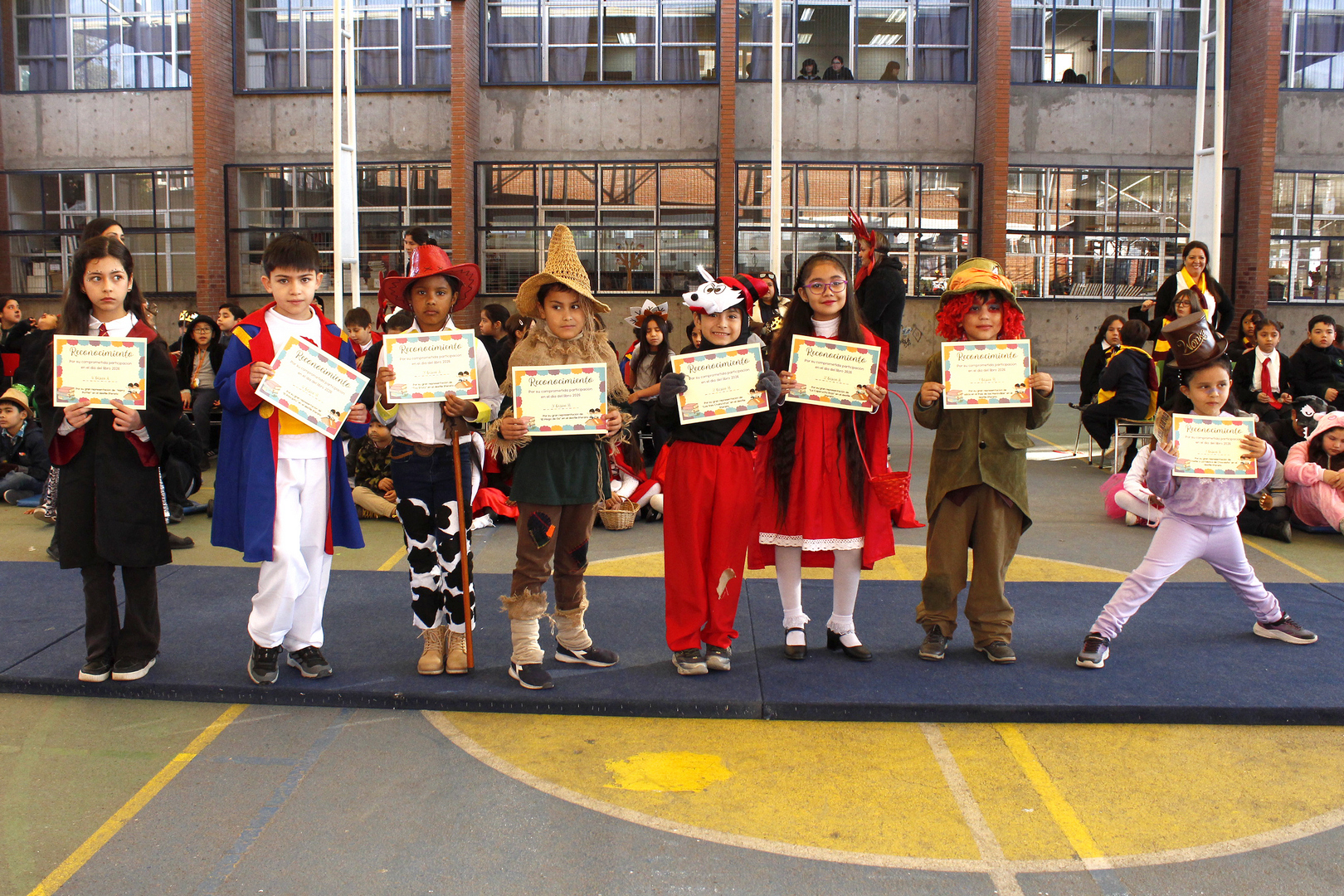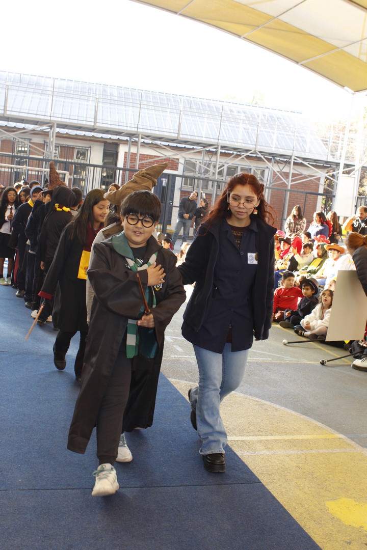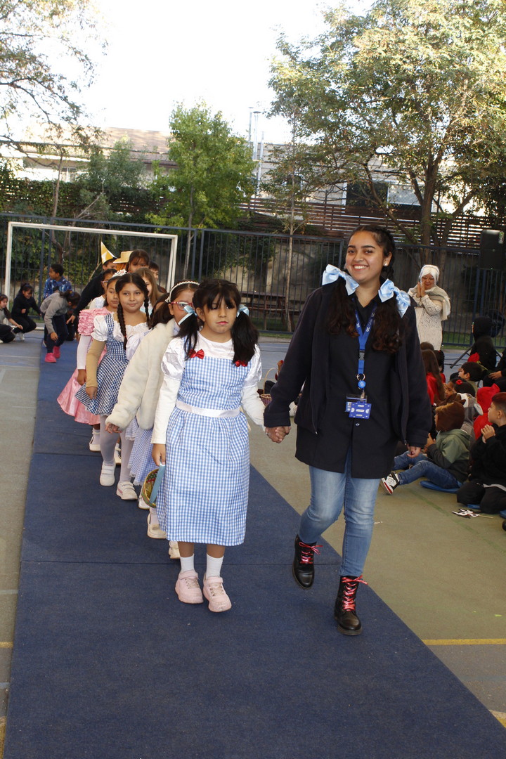 Además, los estudiantes de 1° a 4° básico participaron en un entretenido desfile literario, donde llegaron personificados como personajes de reconocidas historias y cuentos infantiles como El Mago de Oz, Harry Potter, Caperucita Roja, Los Tres Chanchitos, La Fábrica de Chocolate y Toy Story. La actividad estuvo llena de color, imaginación y alegría, permitiendo que niñas y niños vivieran la literatura de una forma lúdica y participativa.
