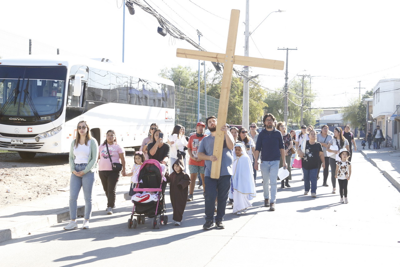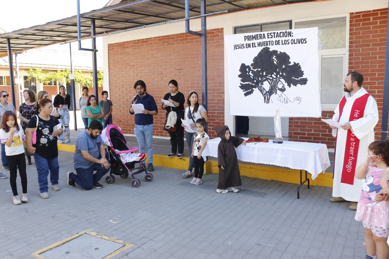 Durante todo el trayecto, se respiró un ambiente de respeto, oración y profunda conexión comunitaria. Niños, jóvenes, apoderados y vecinos participaron activamente en la caminata, algunos incluso colaborando en la animación y lectura de las estaciones, otros portando la cruz o acompañando con cantos y silencio orante.